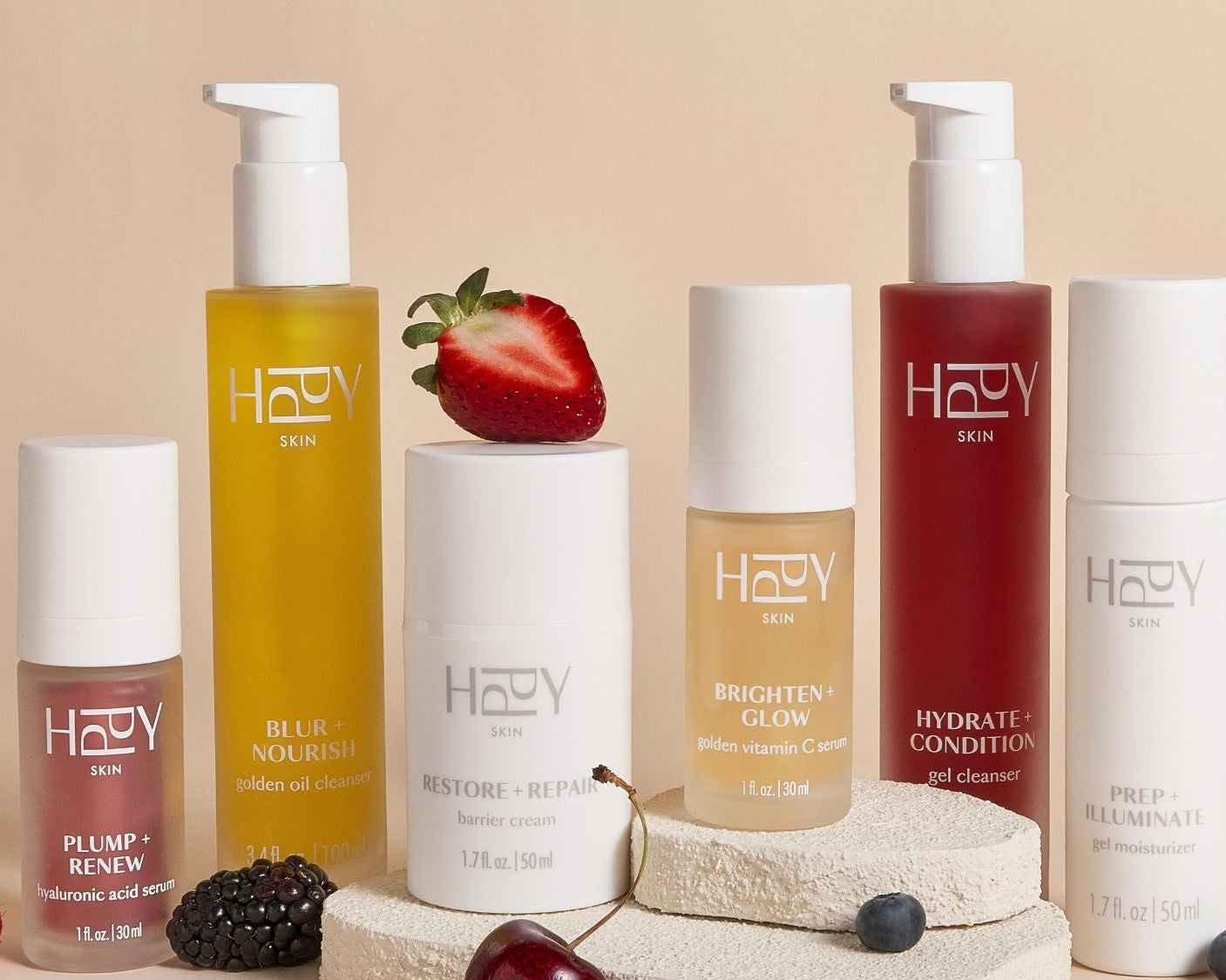 HPPY Skin’s BioBerry Infusion™ delivers broad-spectrum free radical protection using whole-berry nutrients powered by HPP technology. Clinically shown to neutralize the 3 major types of free radicals that impact skin health — our formulas work deeper than the surface to support deeply hydrated, brighter, calmer, and firmer skin that stays strong for the long haul.